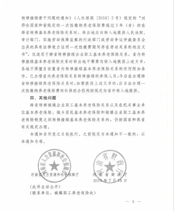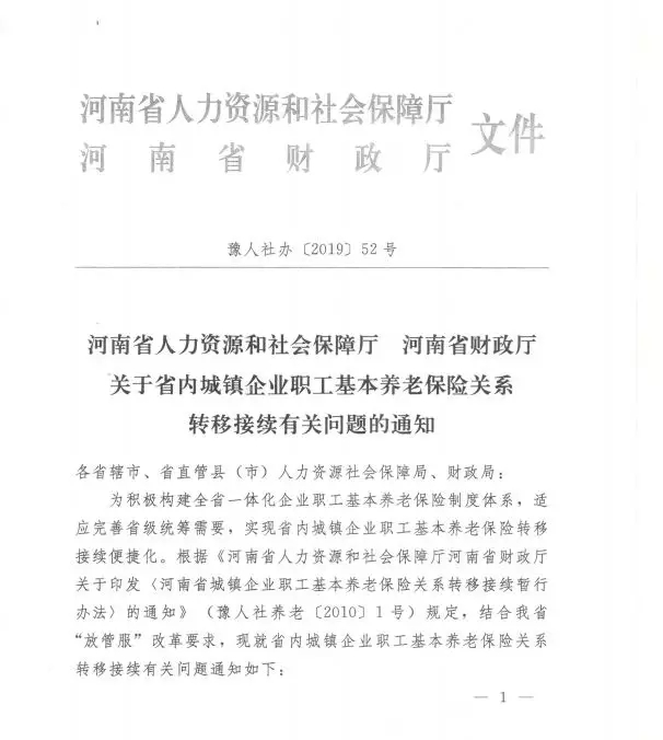河南省关于省内城镇企业职工基本养老关系转移接续有关问题的通知